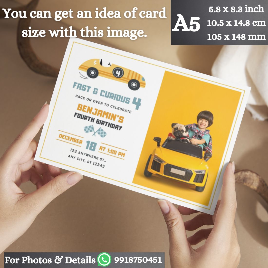 Share your order ID and customization details via WhatsApp at 9918750451 after ordering. Invitation Card is Printed on Thick Premium Photo Paper. Its Size is A5(5.8x8.3inch/14.8x21cm) Individual Premium Red Envelopes Included. AanyaCentric invites you to create memorable moments with our Personalized Kids Birthday Invi